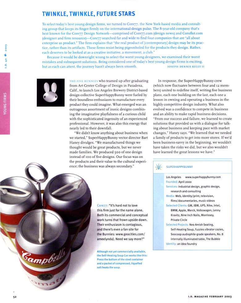 The Self Heating Cans of Soup get Euro press in this month's issue of Gentleman's Quarterly. Air sickness bags of the highest pedigree was the challenge posed to us by the online exhibit DESIGN FOR CHUNKS. Take a look at our contributions with satellite bunny OKSANA BADRAK.